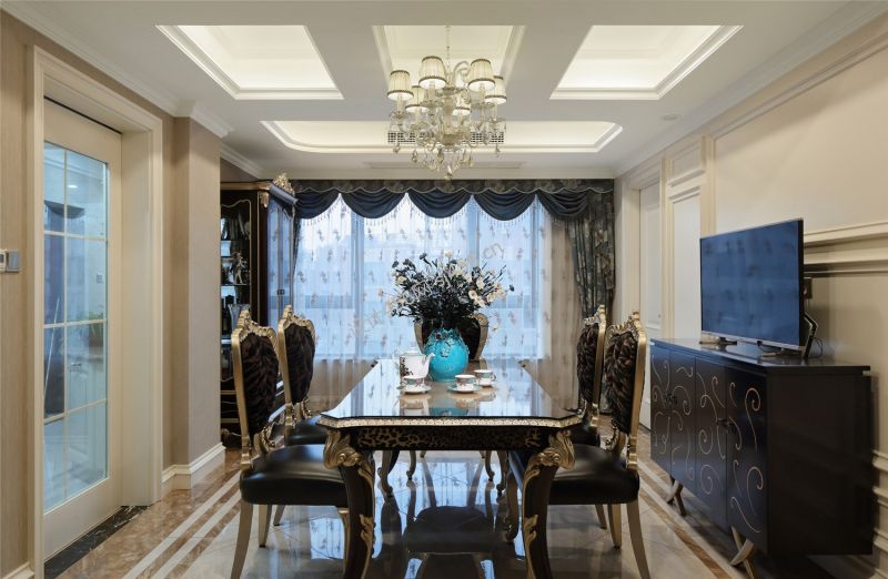 楚曦新城府欧式风格145平米三室两厅装修案例风效果图