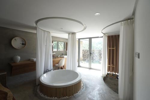 圆形浴缸区别于普通浴缸的地方就在于形状,普通的浴缸形状多为长椭圆形,而圆形浴缸则为规则的圆形。圆形浴缸的深度大,直径相对较小,能够带给人们不一样的沐浴体验。而圆形浴缸多为木桶浴缸,具有较高的性价比,如今很多高高端酒店都选择了木质的圆形浴缸,高端、大气、舒适。