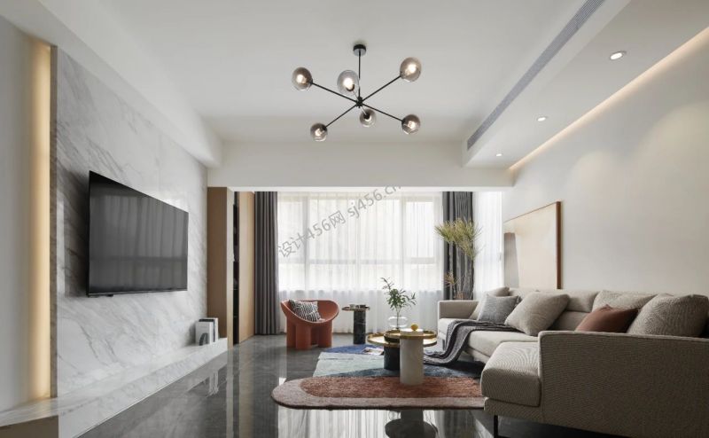松泰华庭时尚简约风142平米三室两厅装修案例风效果图