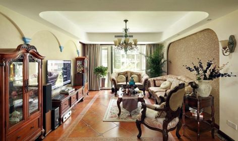 楚曦新城府复古田园145平米三室两厅装修案例风效果图
