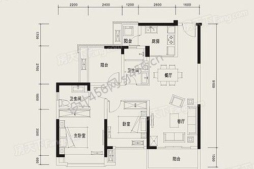 嘉逸园100㎡混搭风格三居装修案例风效果图