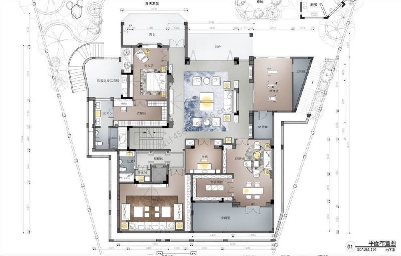 皇庭壹号轻奢风格530平米别墅装修案例风效果图