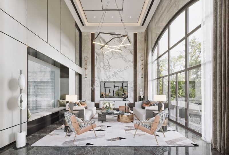 皇庭壹号轻奢风格530平米别墅装修案例风效果图