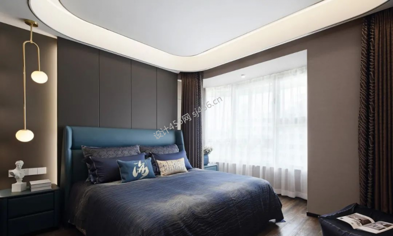现代轻奢风格160平卧室窗帘装修图片