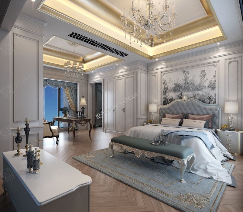 别墅650平法式风格卧室设计图