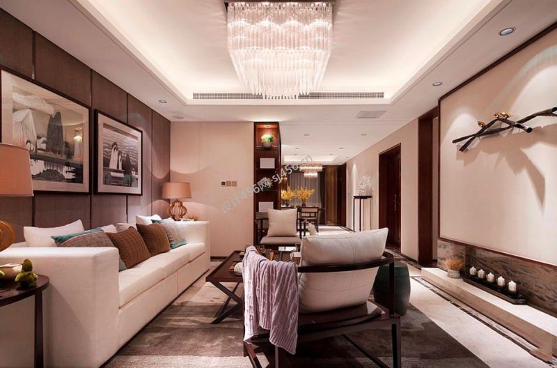 三居128平新中式风格客厅吊顶设计图欣赏