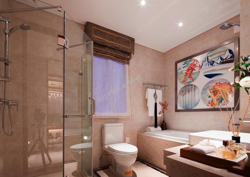 三居128平新中式风格卫生间设计图欣赏