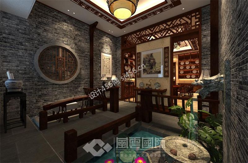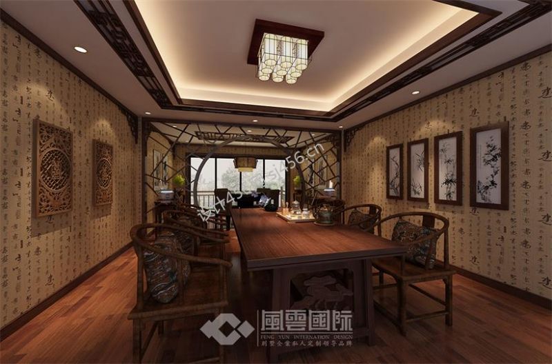 中海御道路一号240㎡新中式别墅装修案例风效果图
