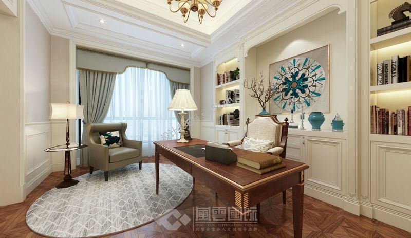 绿城玫瑰园300㎡美式风格别墅书房装修效果图