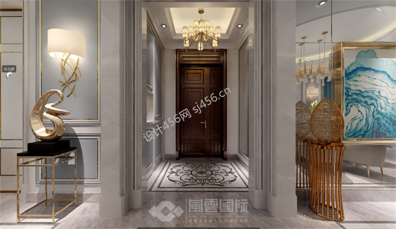 悦麒美寓300㎡欧式轻奢别墅玄关装修效果图