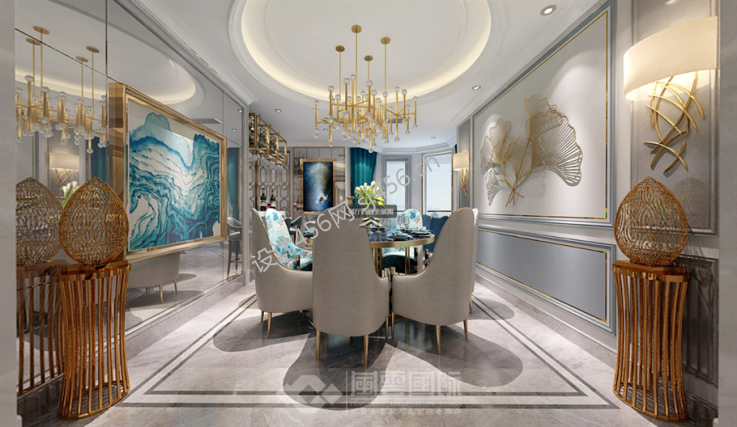 丽晶国际803轻奢风格285㎡别墅装修案例风效果图