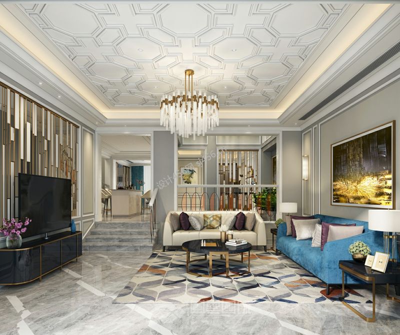 丽晶国际803轻奢风格285㎡别墅装修案例风效果图