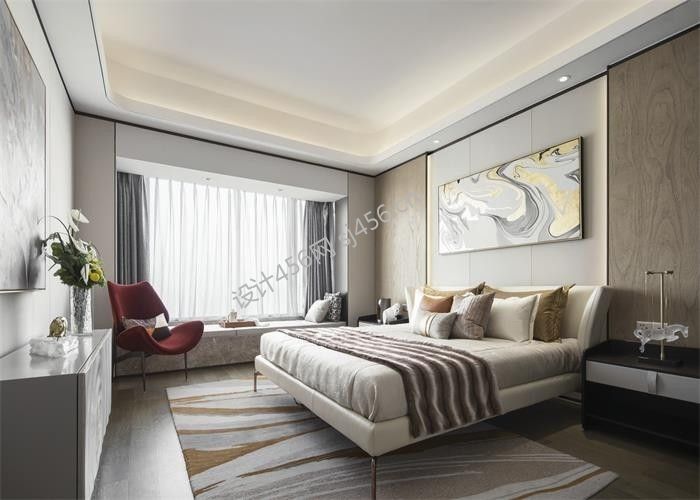 别墅524方现代风格卧室吊顶装修设计图欣赏