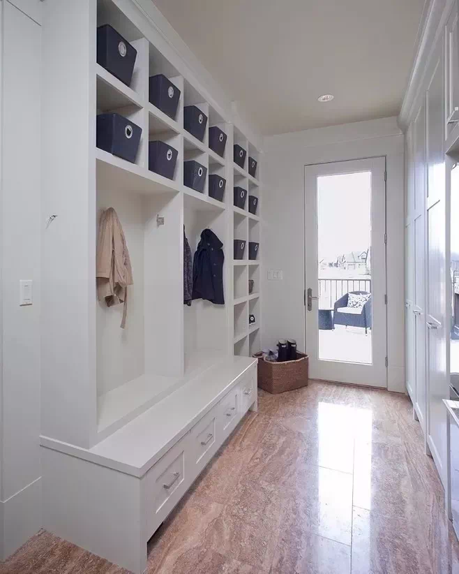 玄关少不了的是一个鞋柜,但稍微把鞋柜改造下,就会变成一个衣帽间了。