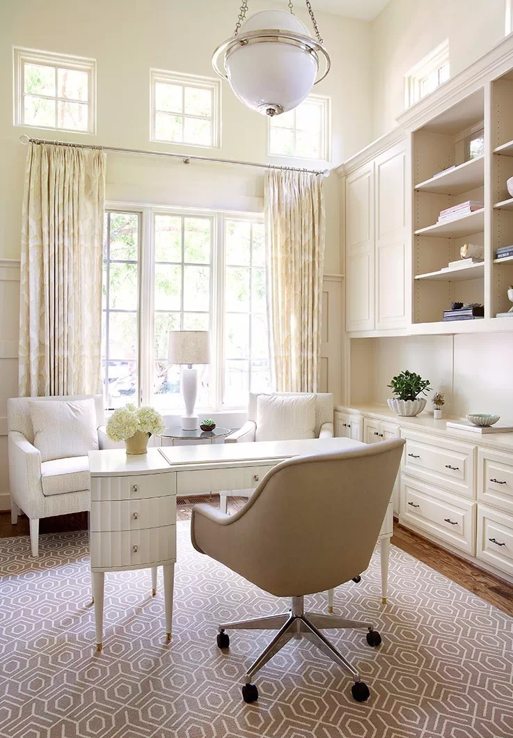 如果卧室有飘窗,也可以因地制宜,比如说在飘窗一侧墙壁打上衣柜,另外一侧延伸出个书桌,中间铺上飘窗垫,就是个阅读休息角。或是把飘窗垫高,直接变成书桌。