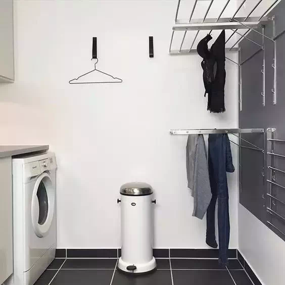 我们可以利用一些晾衣工具来缩小晾衣区,比如说伸缩式折叠架、活动晾衣杆,不仅晾衣服的区域变小,没有洗衣服时还可以收起来,不占地方。