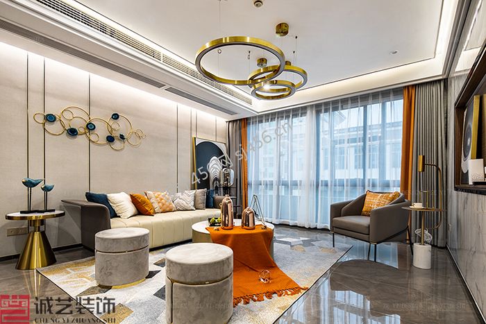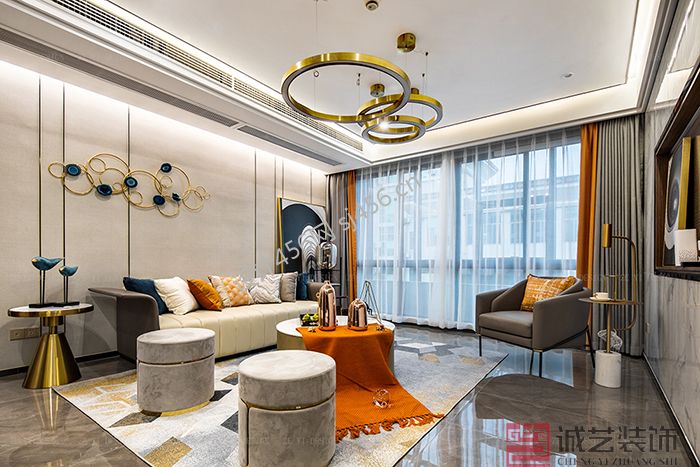 景德镇诚艺装饰 尚东国际126㎡轻奢风格三居室装修设计效果图