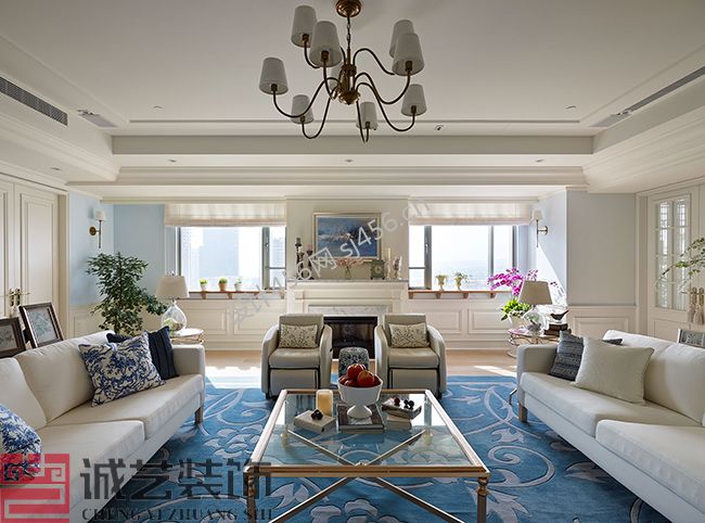 景德镇诚艺装饰 美式风格1369平米三居室装修设计效果图