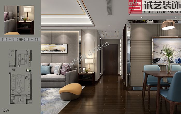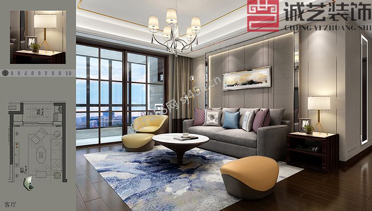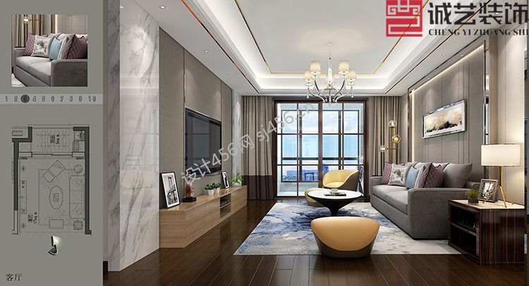 景德镇诚艺装饰 深林壹号128平米三居室轻奢风格装修设计效果图
