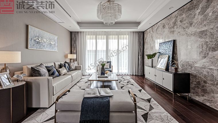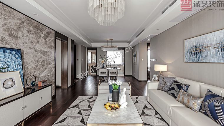 景德镇诚艺装饰 玖域壹品121㎡现代风格三居室装修效果图展示