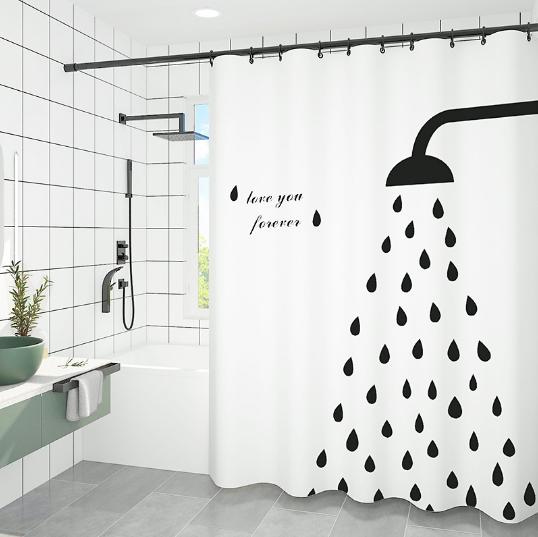 卫生间面积小,用浴帘来遮挡,精心选择的美丽浴帘,本身就像是一幅画,还能够提高卫生间颜值。设计师建议选择浴帘时从材质和款式方面上多下些功夫,避免后期容易贴身和不美观影响使用。