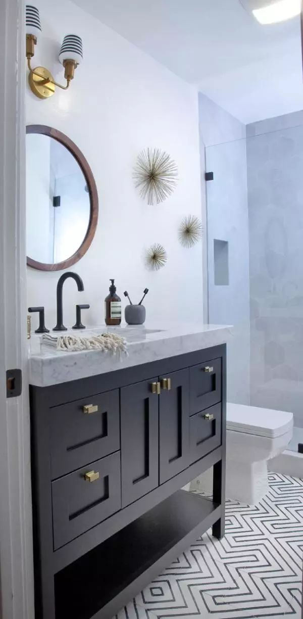 淋浴区用玻璃门作为隔断,又透光又不会阻碍视线,还能防水,关键价格也很便宜。要是细心观察还会发现业主给玻璃门内部的淋浴区墙面全都换成了瓷砖表面,这样洗澡就不用小心翼翼生怕溅水了。
