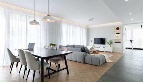 西苑小区124平三居室北欧极简风格装修案例风效果图