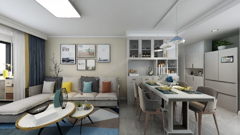 富强·水韵蓝湾46平米现代简约一居室装修案例风效果图