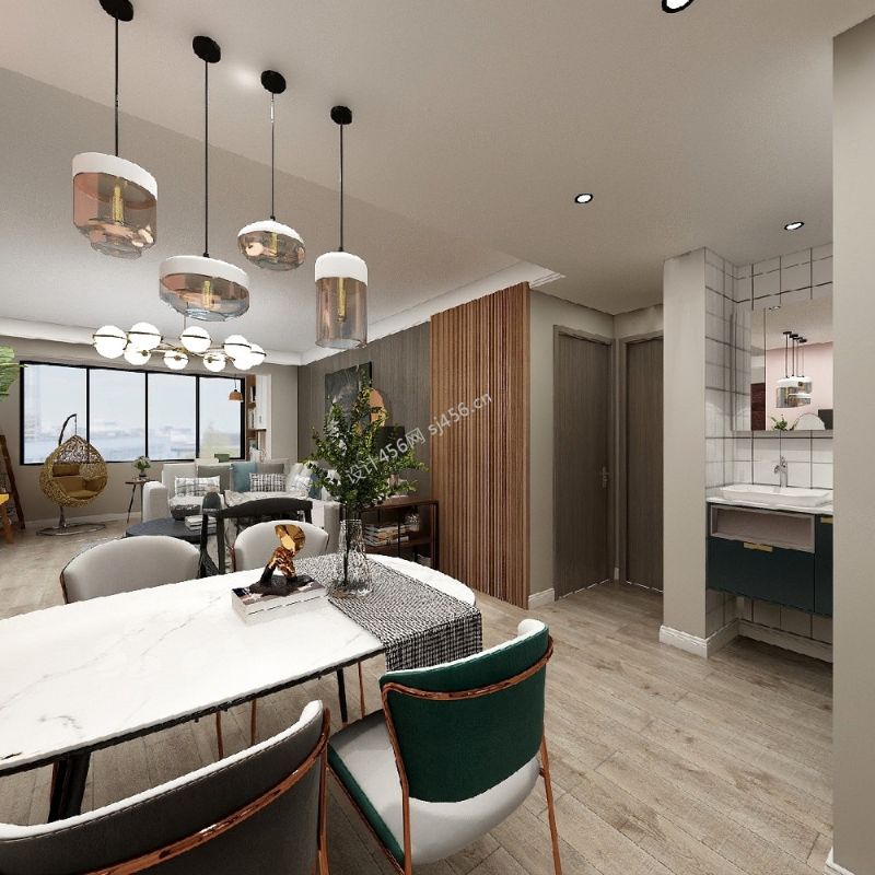 凯旋翰林府85平米现代简约三居装修案例风效果图