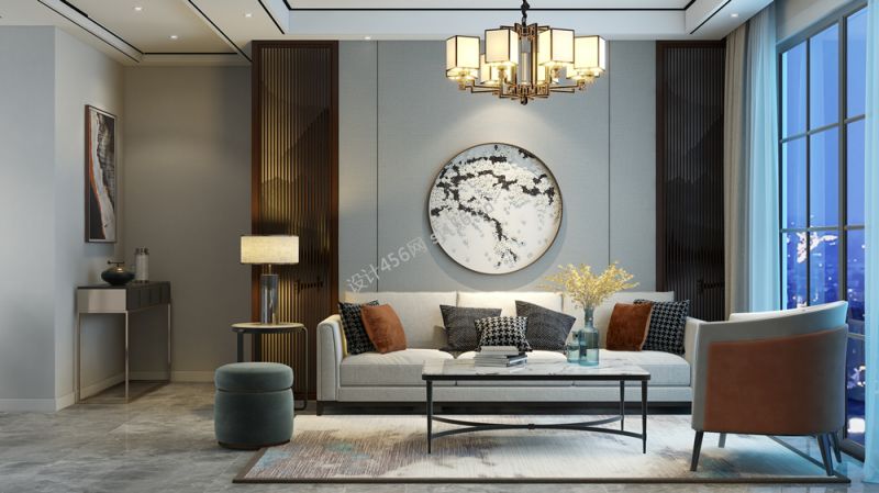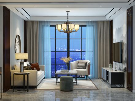 95平三居新中式客厅装修效果图