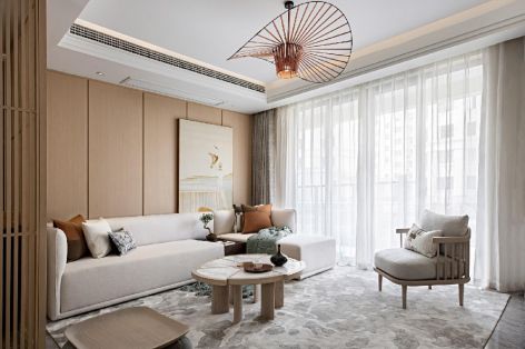 95平三居新中式风格客厅吊顶装修效果图