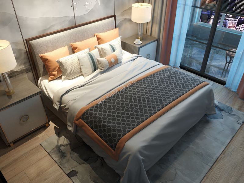 95平三居新中式卧室装修效果图