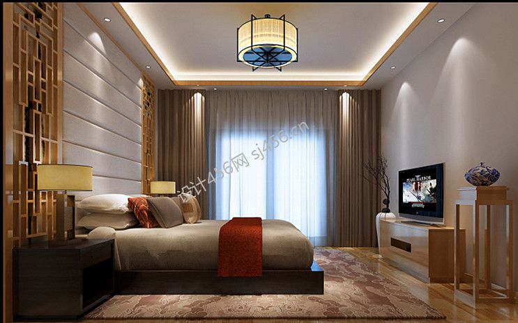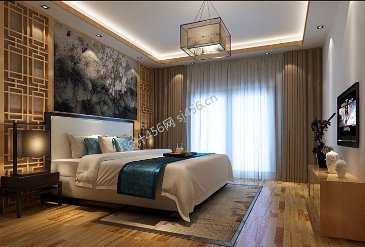 珠江御景豪苑260平米现代中式主卧室装修案例