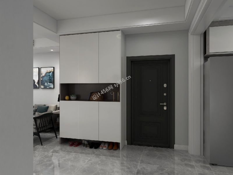 140平米现代简约三居室进门玄关鞋柜设计案例