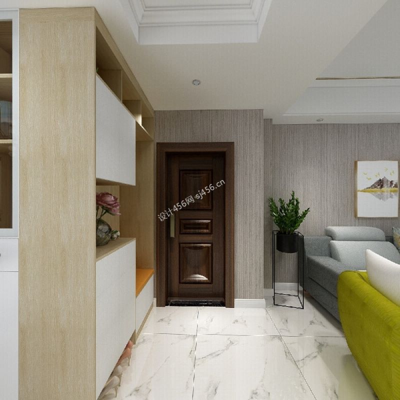 118平米现代简约三居室客厅玄关柜装修效果图