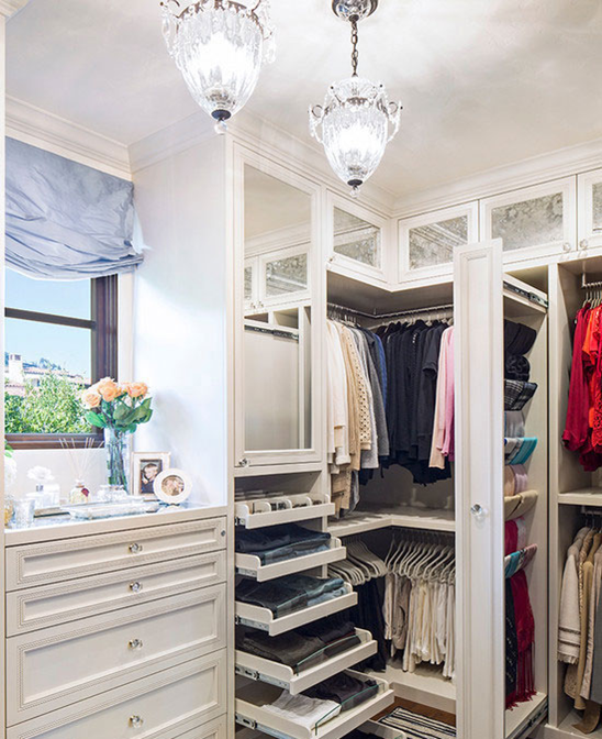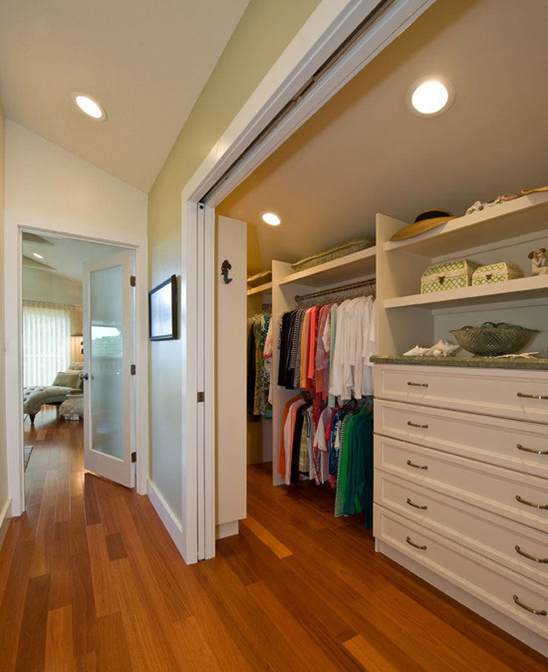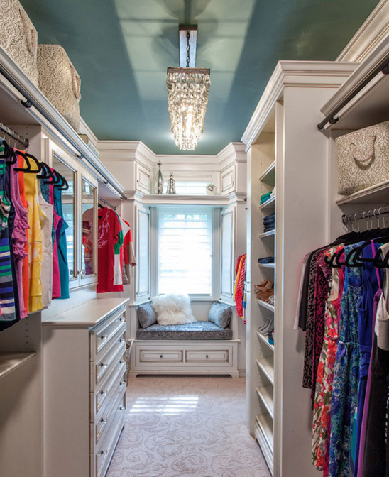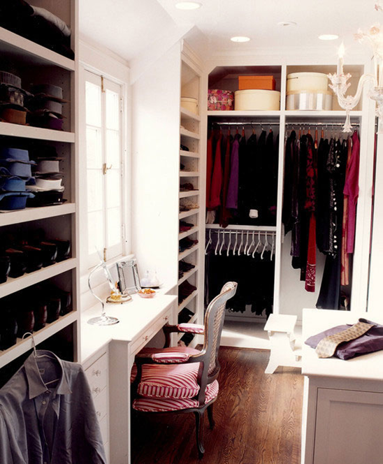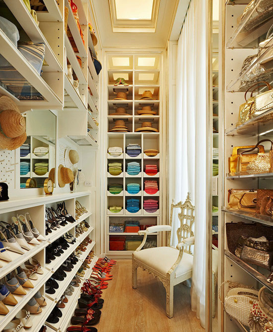 又长又窄又高的空间,十分适合用来作衣帽间,无论是鞋子、包包、还是帽子,都可以高高堆起,享受层高的优势,但是这样的设计,别忘了给衣帽间增添一把折叠梯哦。