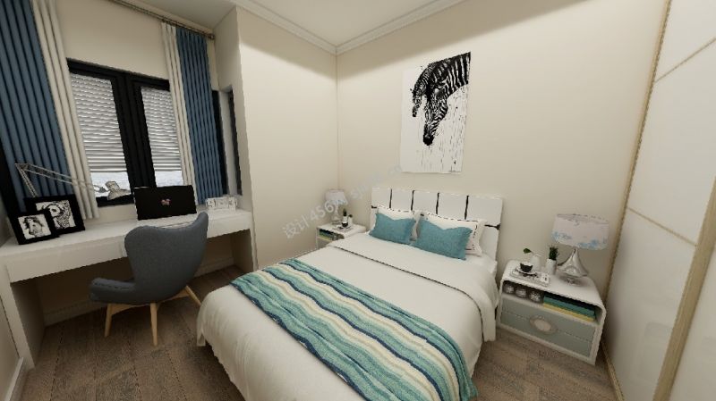 现代简约风格122平三居卧室窗帘图片