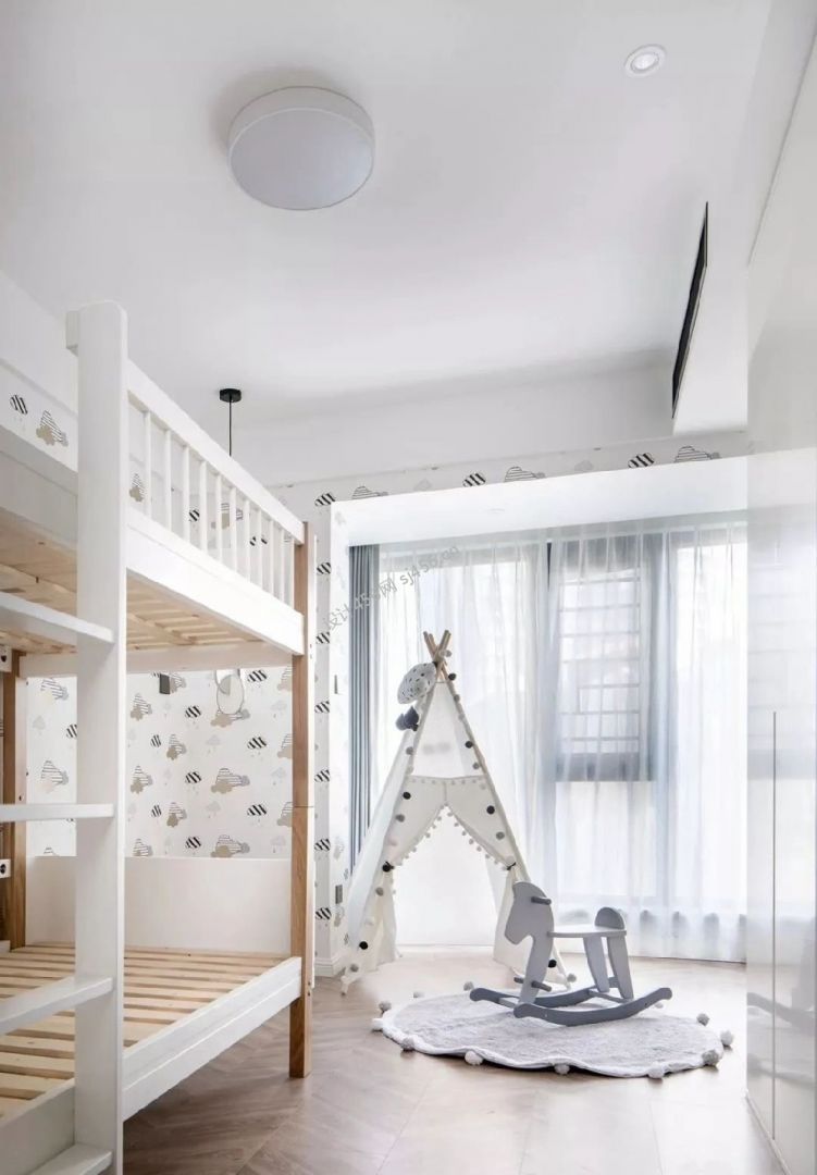 140平米现代简约儿童房四居装修实景图