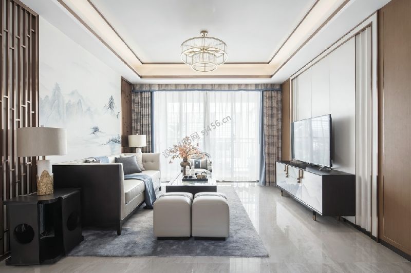 墨明装修 滨海花园新中式风格132平米三居室装修案例