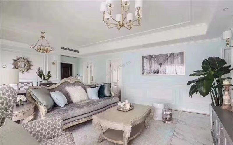 绿城玉兰花园1101平米三居法式沙发背景墙装修设计效果图