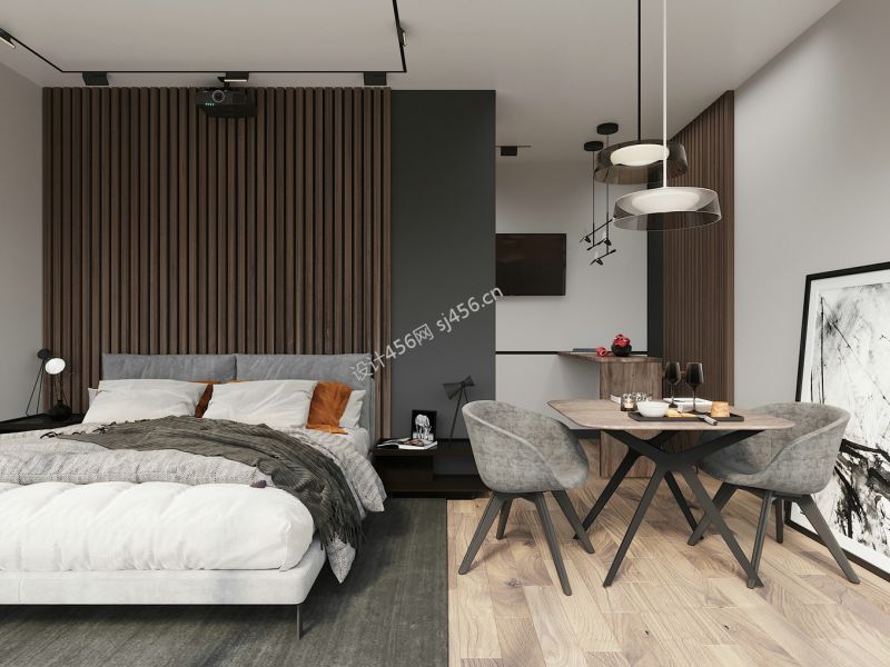42㎡北欧风格单身公寓卧室餐厅装修效果图
