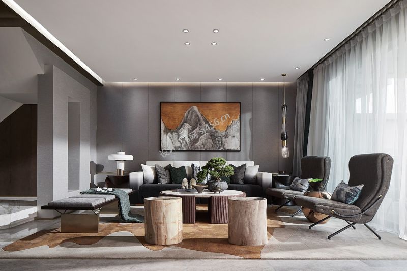 189平米现代新中式复式客厅装修效果图