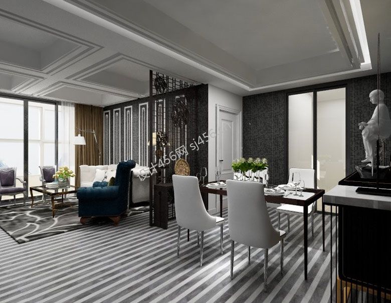 100平米新古典风格三居室客厅餐厅装修效果图