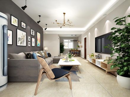 运河公馆北欧92平二居室装修案例风效果图