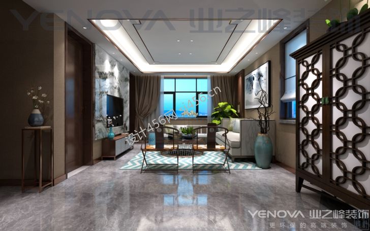海能国际新中式150平三居室装修案例风效果图