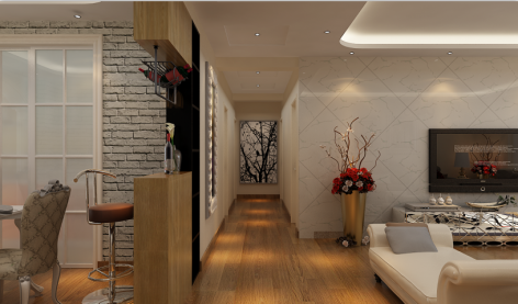 运河佳园93平米两居室现代简约风格装修效果图风效果图