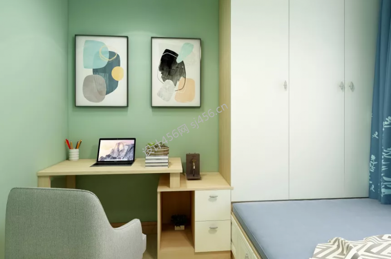 87平米二居室简约风格卧室书桌设计图