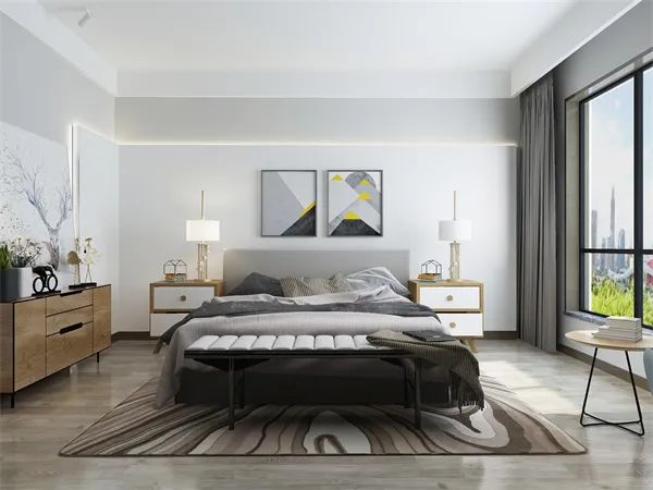 631配色法是指:60%的背景色+30%的主体色+10%的点缀色。比如卧室选择白色为背景色,确定简约的格调,然后以灰色为主题色,确定卧室整体风格;再加入10%的咖啡色做点缀,增加生机活力。