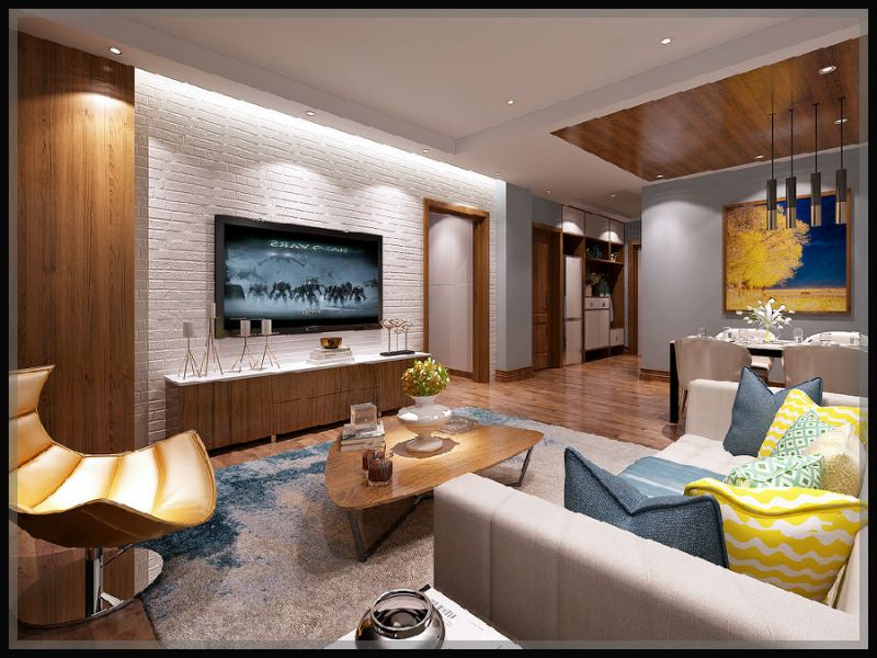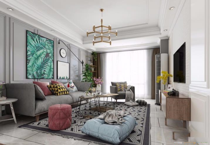 万达广场120平米三居室现代风格装修效果图