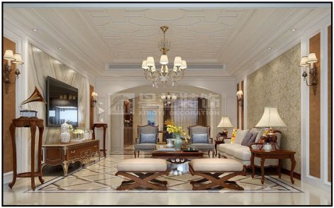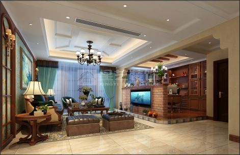 观澜盛世200平米别墅美式风格装修效果图风效果图